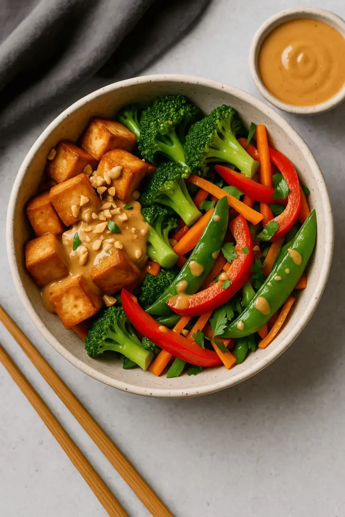 7. Tofu & Vegetable Stir-Fry with Peanut Sauce